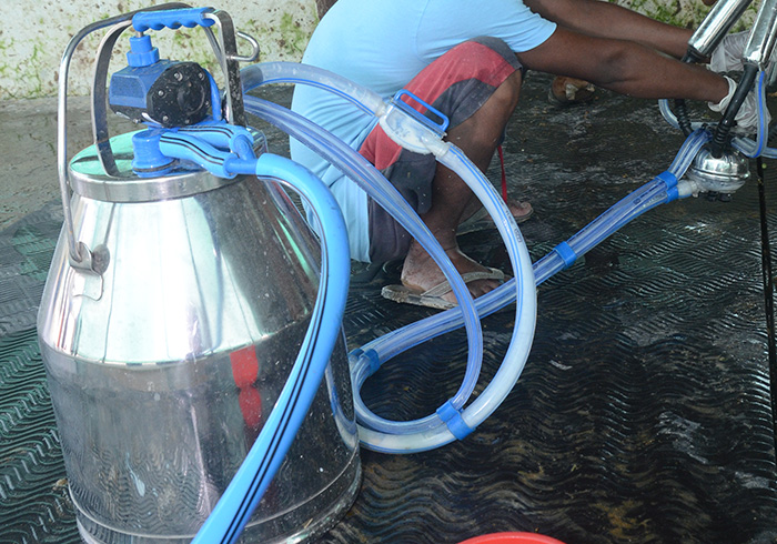Although there is a definite simplicity in hand milking, we employ the use of sophisticated & state of the art milking equipment to ensure that milk is collected, stored, processed and bottled hygenically. Despite this practice, we make sure that our cows are not restrained for milking. Our dairy farmers rather build trusting relationships with the cows during the rearing process. Milking equipment not only mimic the suckling effect of the calves, but also promote time efficiency, ensure that milk is collected cleanly (without contaimination), and allow for quicker cooling of the collected milk. We routinely (almost every day) clean the milking equipment to ensure that the quality of our milk is not compromised.